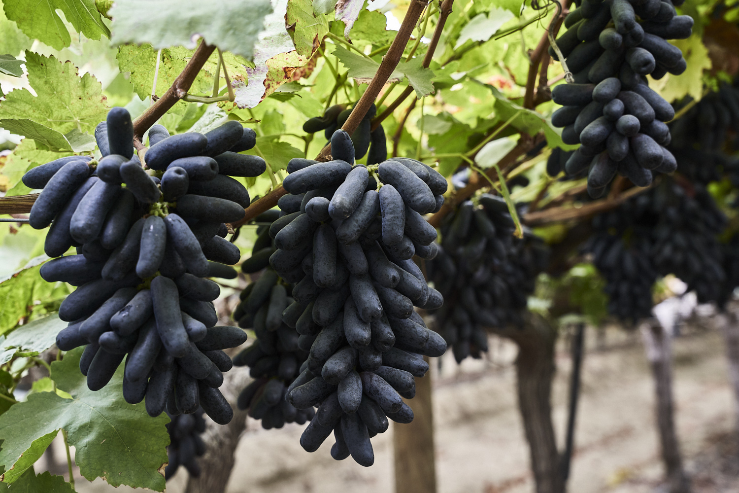 La Sweet Sapphire™ es una uva negra sin semillas, desarrollada en Estados Unidos. Se distingue por su forma alargada única, color negro intenso y textura crujiente, con un sabor dulce y afrutado. Es una variedad de media a tardía, con buena resistencia al almacenamiento y transporte, ideal para mercados gourmet.